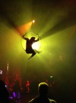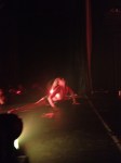 I played with the meathook again, working on a hold technique passed along to me by Natasha – it feels better, but it’s hard (the entire thing is hard, though). My armpit grip is pretty strong, while my hand grip sometimes is not – my wrists have been acting up since I started training and aerial conditioning. I’ve never had the strongest wrists, but I had issues with my hands locking up while training – since then, I have only a certain number of solid grips to use each class. I’m hoping that it’ll get better over time. I worked on some shoulder mounts, aerial pencil, etc. I also did the crazy splay leg climb we saw at PPC. 🙂