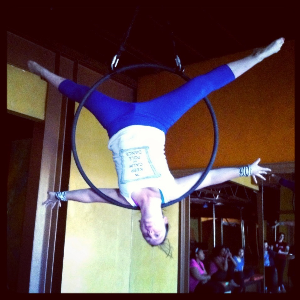 I tried to teach myself the Titanic tonight – it might also be called Ship’s Bitch, I really don’t know. I’ve seen it done mid-air, on spinning pole, which is jaw-dropping and gorgeous…but, I tried from the floor, which is also really pretty when I’ve seen it in performances. Since i had no breakdown on which to go on, I worked it out as best I could just from having watched Sergia Louise Anderson‘s stunning USPDF 2012 Amateur Championship performance. Watch the entire video – so worth it, her musicality is amazing, and she’s such a beautiful dancer – but the move (whatever it is called) starts at the 2:28 mark: