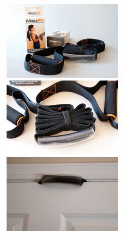 As their website states, the strap, “created by fitness guru and personal trainer Andrew Gavigan, the MostFit™ resistance trainer was designed to be easy-to-use for anyone, anytime, anywhere.” This is totally true! To use it indoors, you simply need a door/door frame to close around the strap as an anchor (ideally a door that locks), and some room to move behind it. The strap has a handy moveable plastic section (the anchor) that prevents the strap from slipping out from between the door and the frame (see this video for directions). You can also anchor the strap on a pull up bar, and if you need to shorten it, you simply wrap the strap around the bar a few times until you get the desired length.