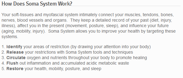 A while back, I came across a company called Soma System via Facebook – I think Marlo Fisken posted about them on her fan page? – and I was really intrigued by what they offer. It seems like an incredible practice for pole dancers looking to do body work! What is Soma System, you ask? It’s a holistic bodywork practice that you can do on your own, which allows you to blend massage techniques and meditation in order to release tense muscles and minds (among other things):