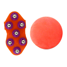 The Big Orange is an ideal transition tool between softer massage options and firmer options. It’s inflated, so it has some give to it, and it’s larger than the other items. You can use it on hips, feet, shoulders, pecs, etc. I find it easier to use on my own, i.e. trapping it between the floor and my body, than to use with a partner, but that’s me.