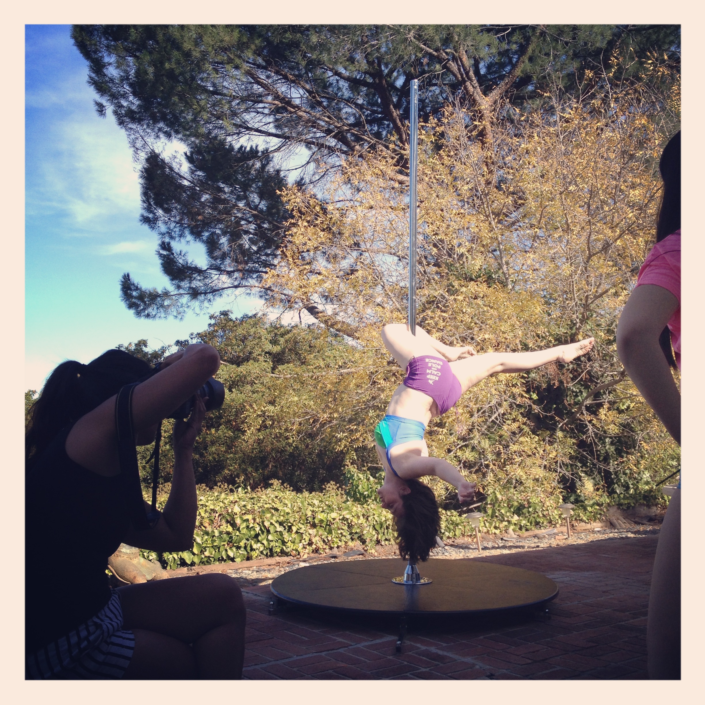 So, on Sunday, my friend Amanda and I showed up at a home in Sherman Oaks for a pole photo shoot that benefited victims of the recent typhoon in the Philippines. Each dancer chipped in a certain amount to get some photos taken on a pole – there were also some fun pole-related raffle prizes, so we got some raffle tickets as well (I’m hoping to win the custom drawing from Leen Isabel!)